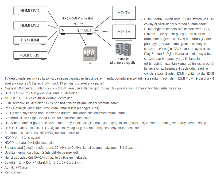 Digitus 4K 2'li HDMI Video Çoklayıcı DS-46304