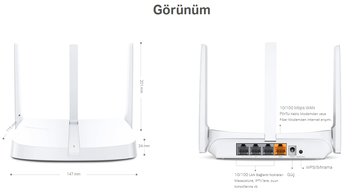 DiğerleriPaket içeriğiWi-Fi N Yönlendirici (MW306R)