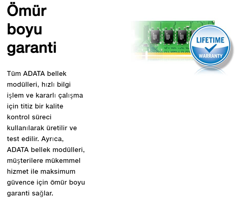 Adata 4GB 2666MHZ DDR4 Masaüstü Ram AD4U2666J4G19-S