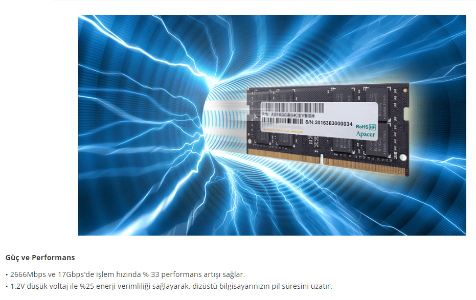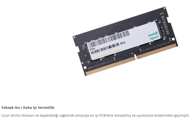 Apacer 8GB 2666Mhz CL19 DDR4 SODIMM Notebook Ram ES.08G2V.GNH