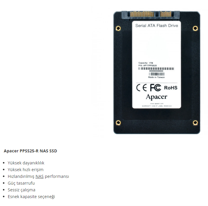 Apacer PPSS25-R 1 TB 550/500MB/s 2.5" SATA 3 NAS SSD Disk AP1TPPSS25-R