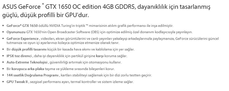 Asus GeForce GTX 1650 4GB OC GDDR5 128Bit Ekran Kartı 90YV0D30-M0NA00