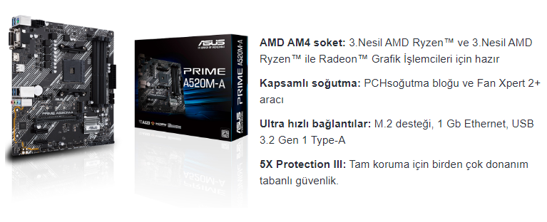 | İşlemci Chipset | AMD A520 |