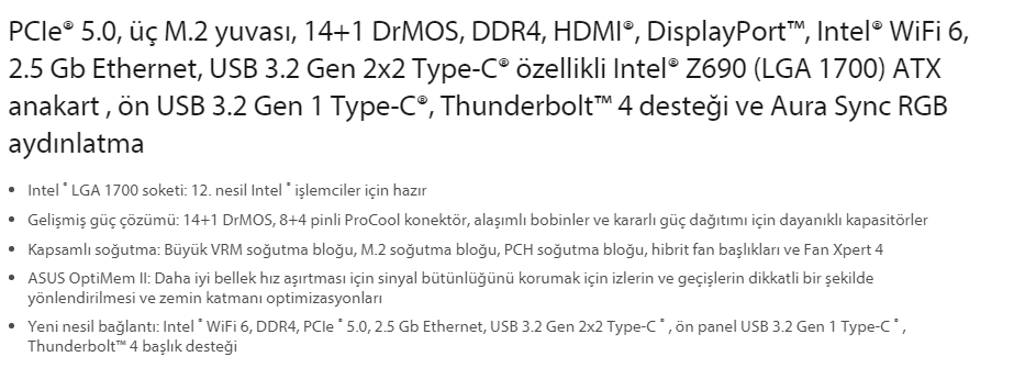 | İşlemci Chipset | Intel Z690 |