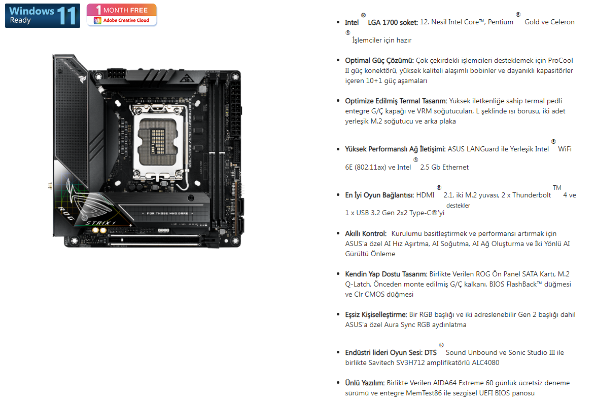 * Intel® Rapid Storage Teknolojisi, NVMe RAID 0/1/5, SATA RAID 0/1/5/10'u destekler.