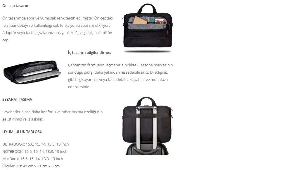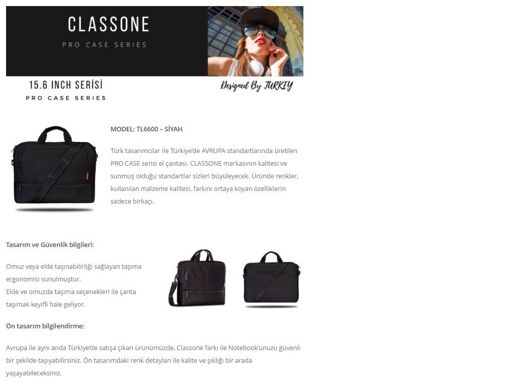 Classone TL 6600 15.6 inç uyumlu Notebook , Laptop El Çantası TL6600