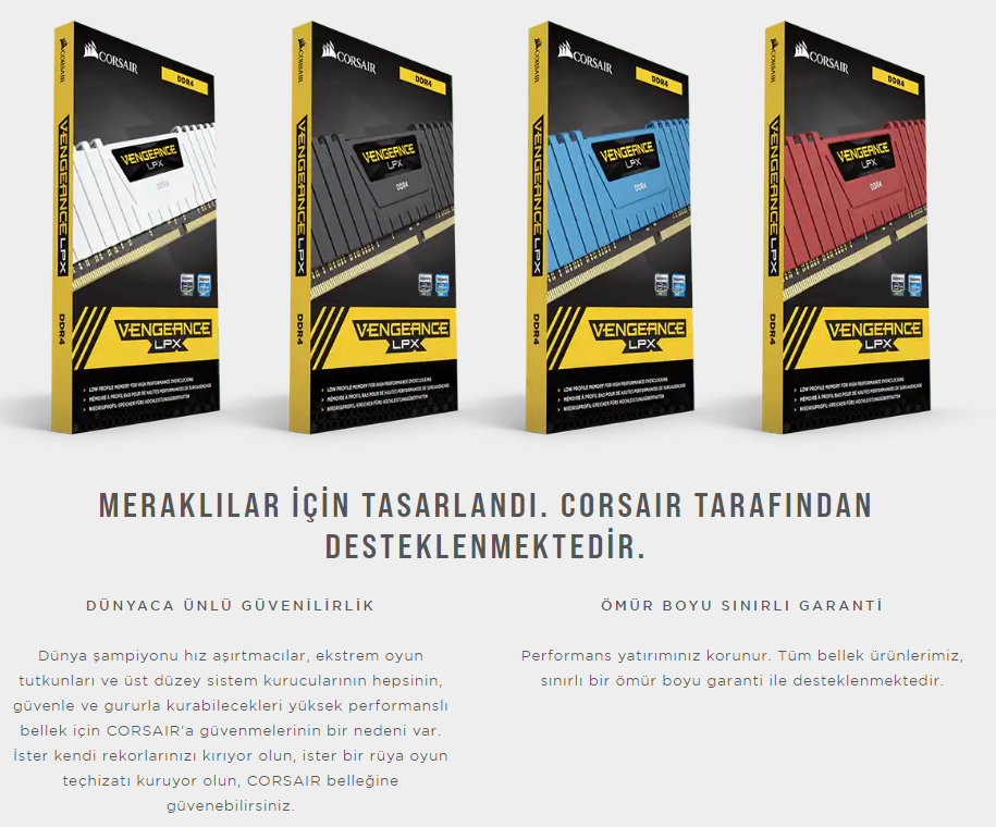 Corsair 16GB DDR4 (2x8) 2400Mhz Ram Bellek CMK16GX4M2A2400C16
