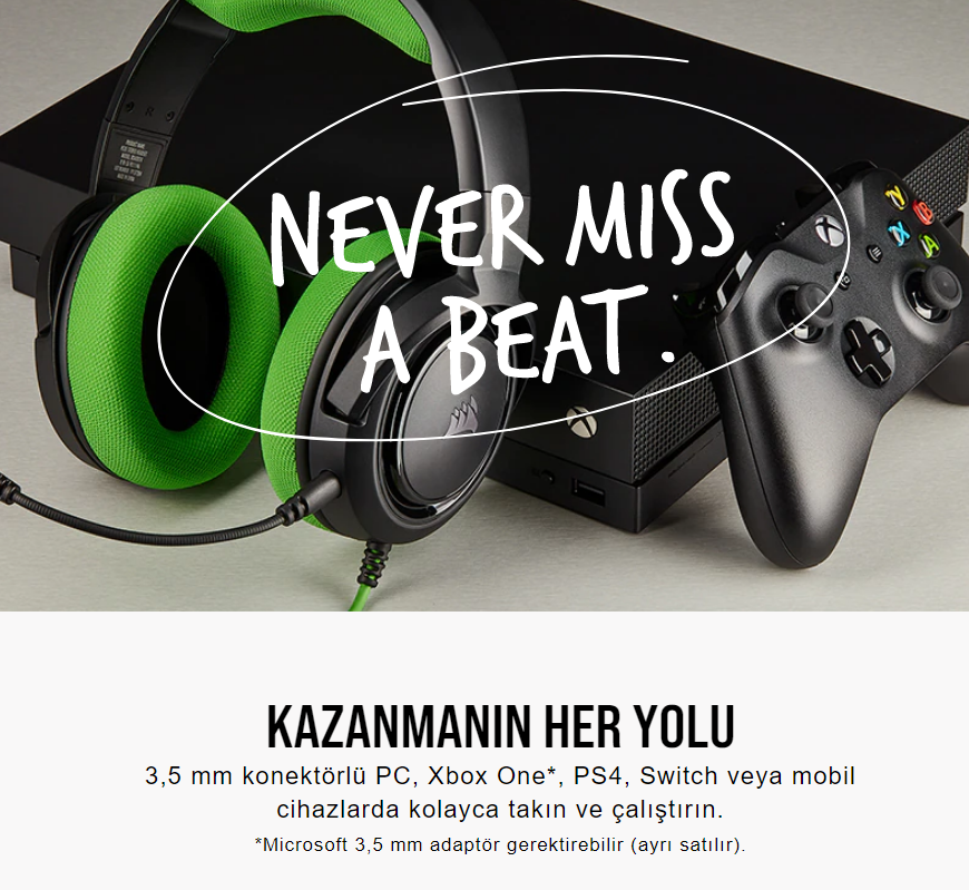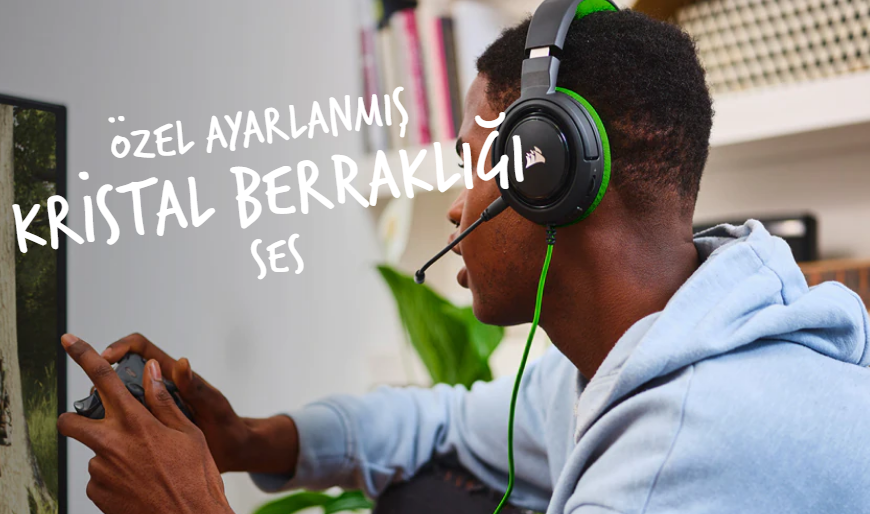 Corsair CA-9011197-EU HS35 Stereo Oyuncu Kulaklığı, Yeşil (PC, PS4, Xbox One, Nintendo Switch Uyumlu)