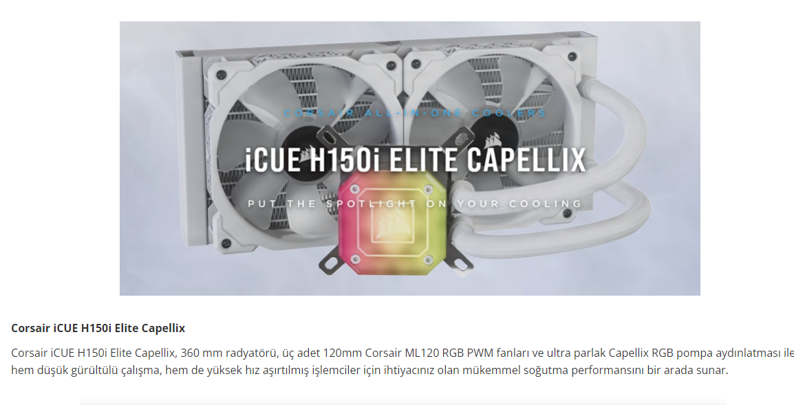 Corsair CW-9060051-WW H150I 360MM SIVI SOGUTMA