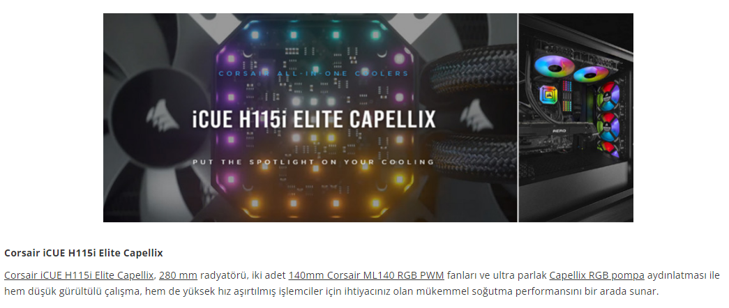 Corsair iCUE H115i Elite Capellix Sıvı Soğutma CW-9060047-WW