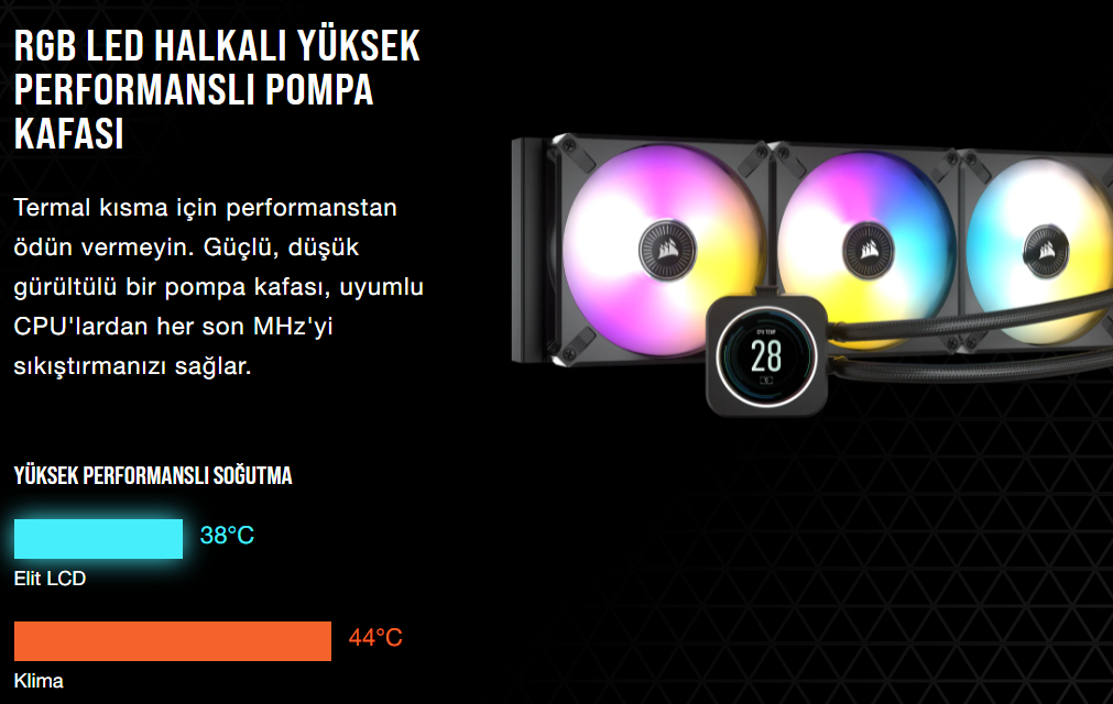 Corsair iCUE H150i ELITE LCD Ekran Sıvı CPU Soğutucu CW-9060062-WW
