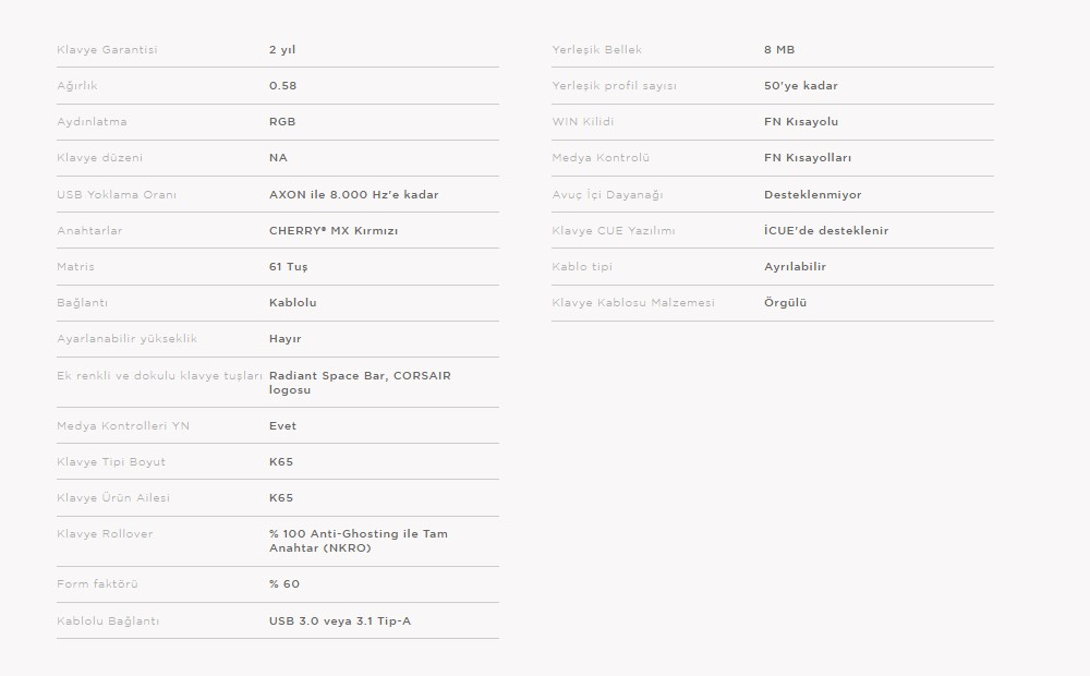 Corsair K65 RGB MINI% 60 Mekanik Oyun Klavyesi-CHERRY MX Kırmızı
