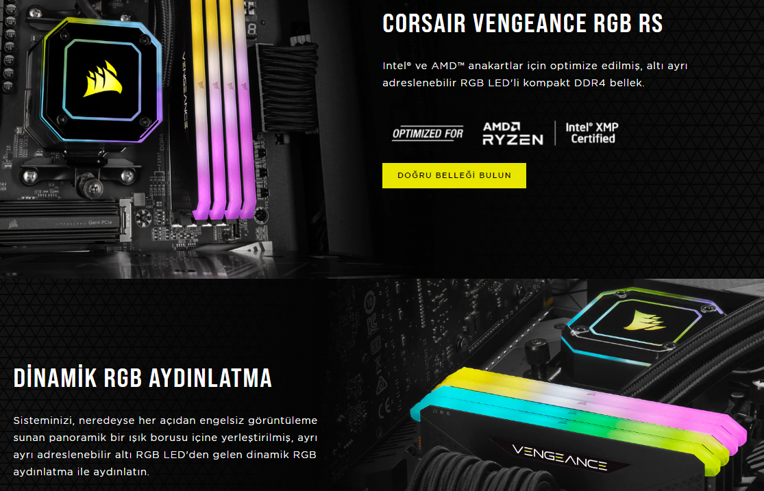 Corsair Vengeance RGB RS 16GB (2x 8GB) D4 3600MHz Ram Bellek CMG16GX4M2D3600C18