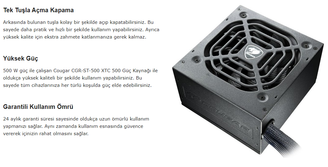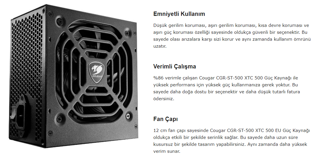 Cougar XTC 500W 80+ POWER SUPPLY CGR-ST-500
