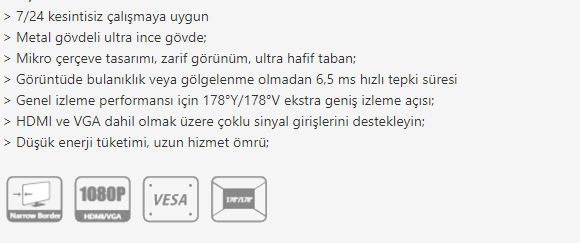 Dahua 21.5" 6.5ms 60Hz Vga Hdmi 7-24 MM LED Güvenlik Monitör LM22-H200