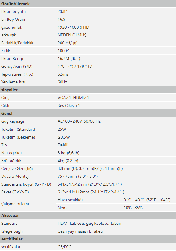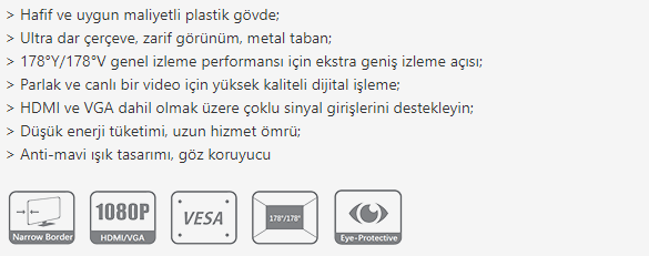 Dahua 23.8" 6.5ms 60Hz Vga Hdmi LED Monitör LM24-B200