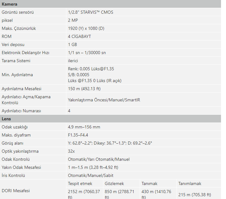 2MP 32x Starlight IR WizSense Ağ PTZ Kamera