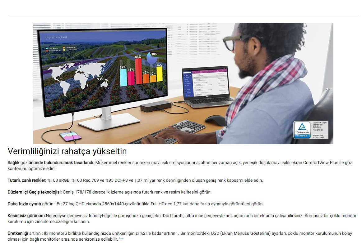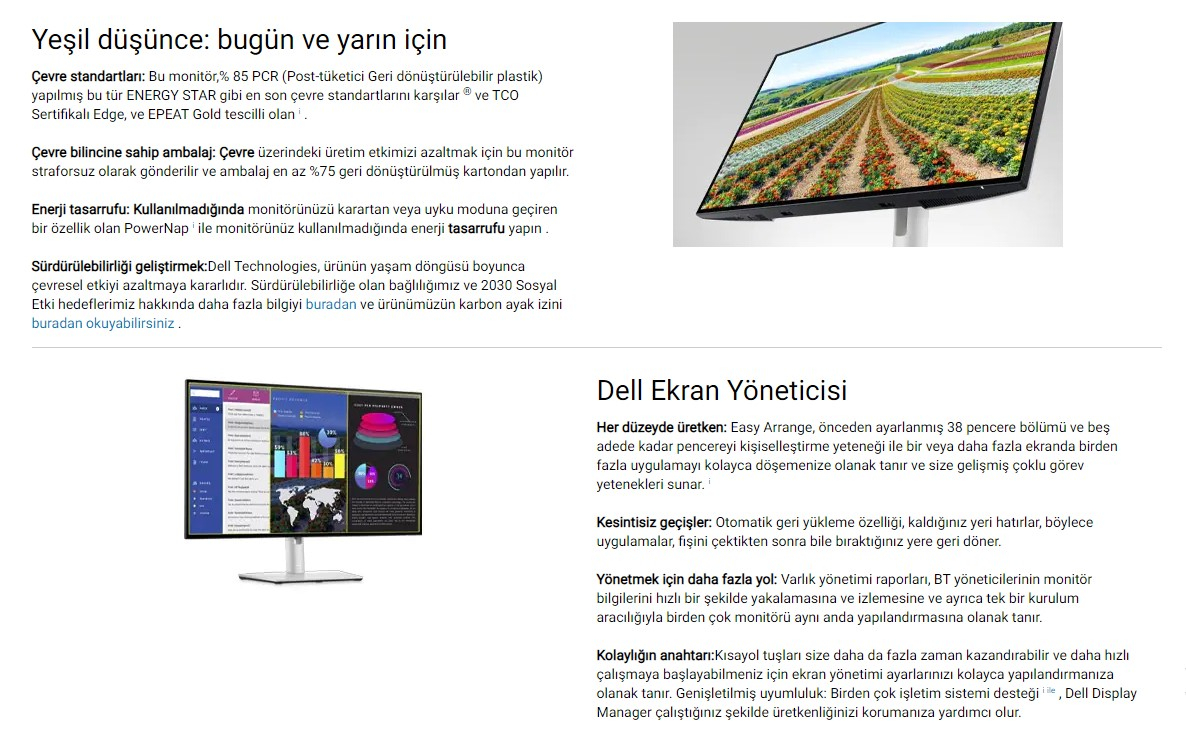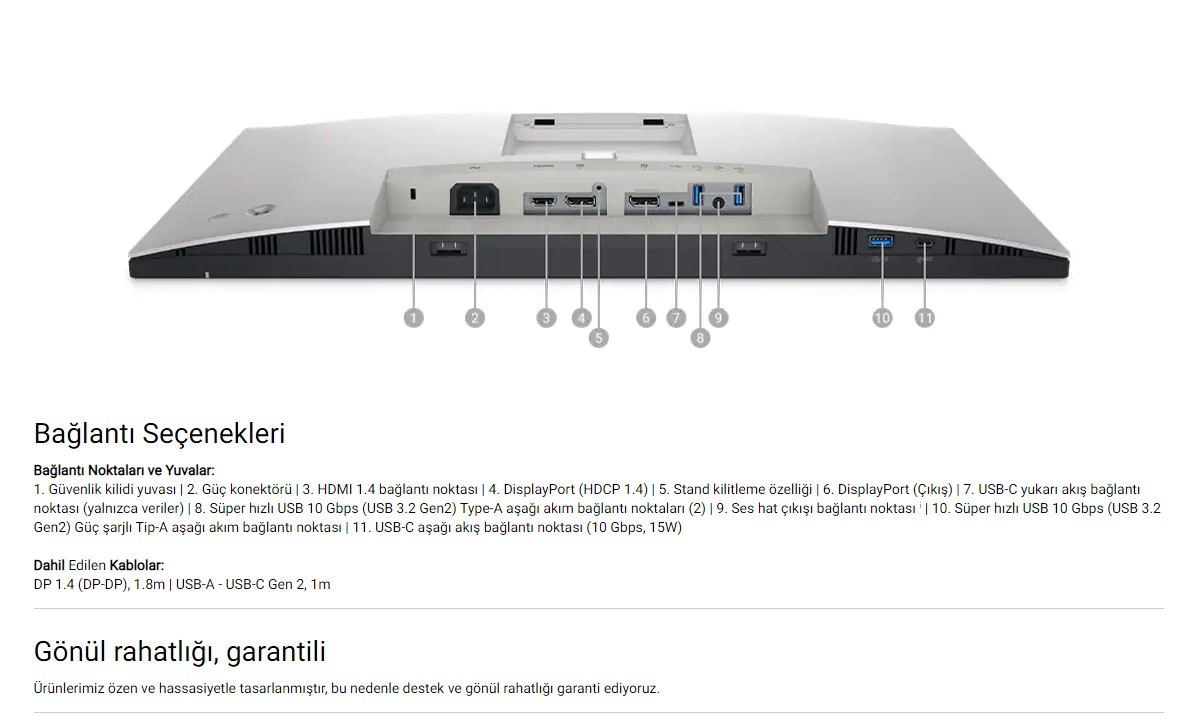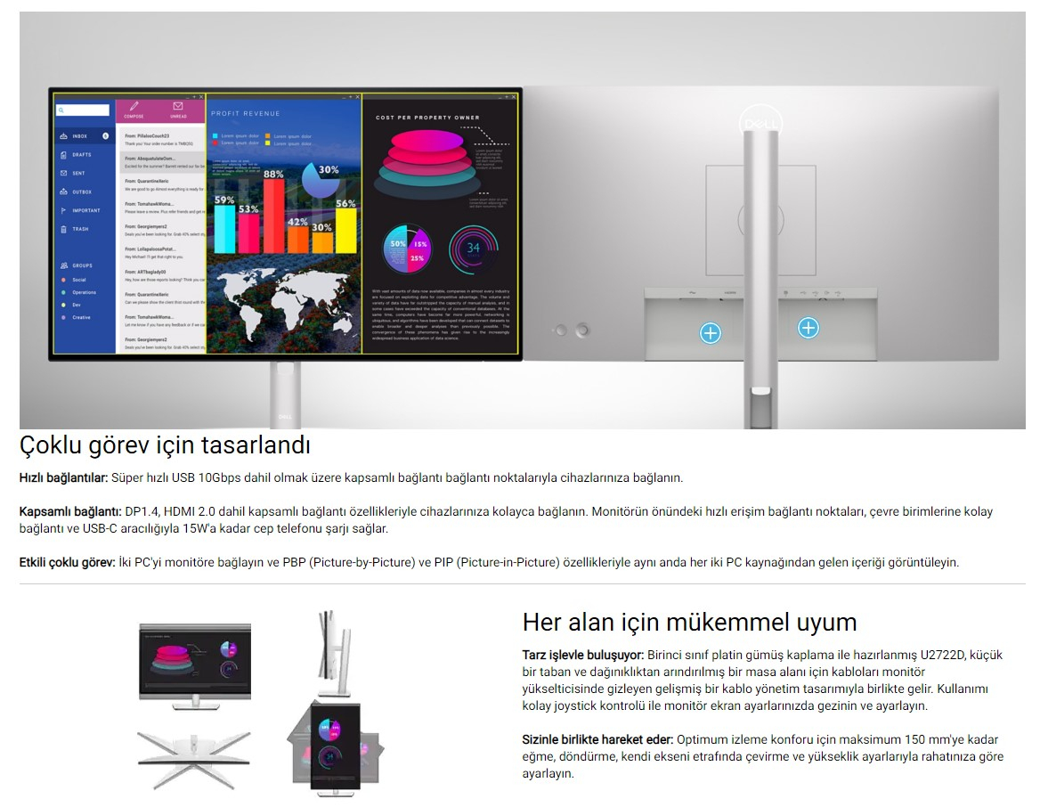 Dell UltraSharp 27'' QHD 5ms 60HZ DP HDMI USBC IPS Monitör U2722D