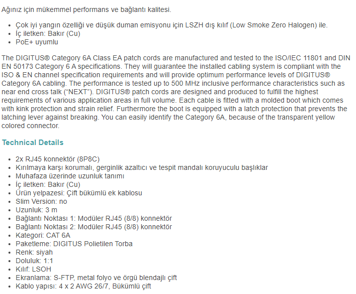 Digitus Cat 6A S/FTP 3m Siyah Kablo DK-1644-A-030/BL