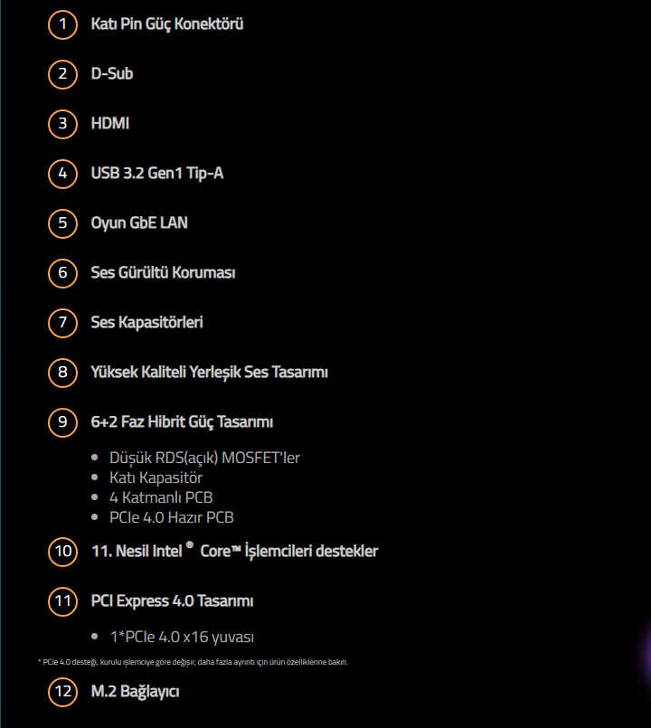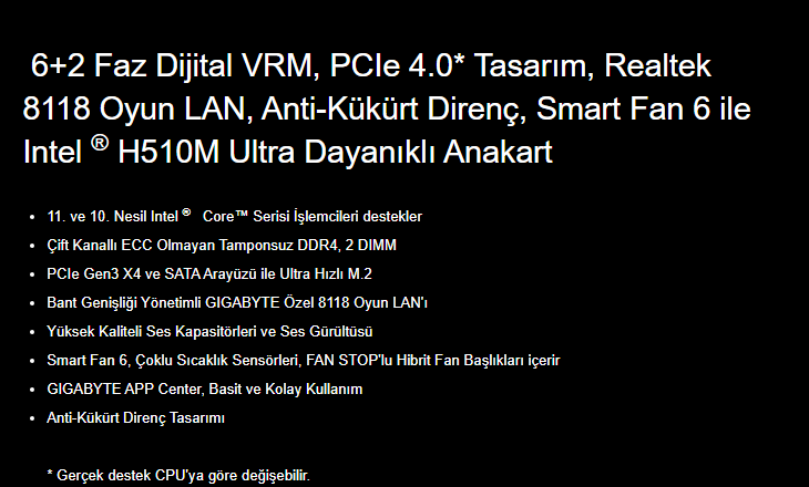 | İşlemci Chipset | Intel H510 |