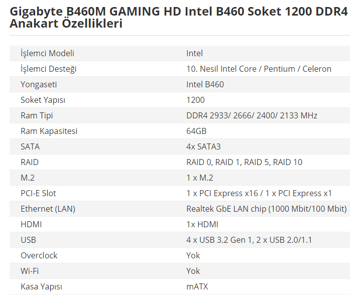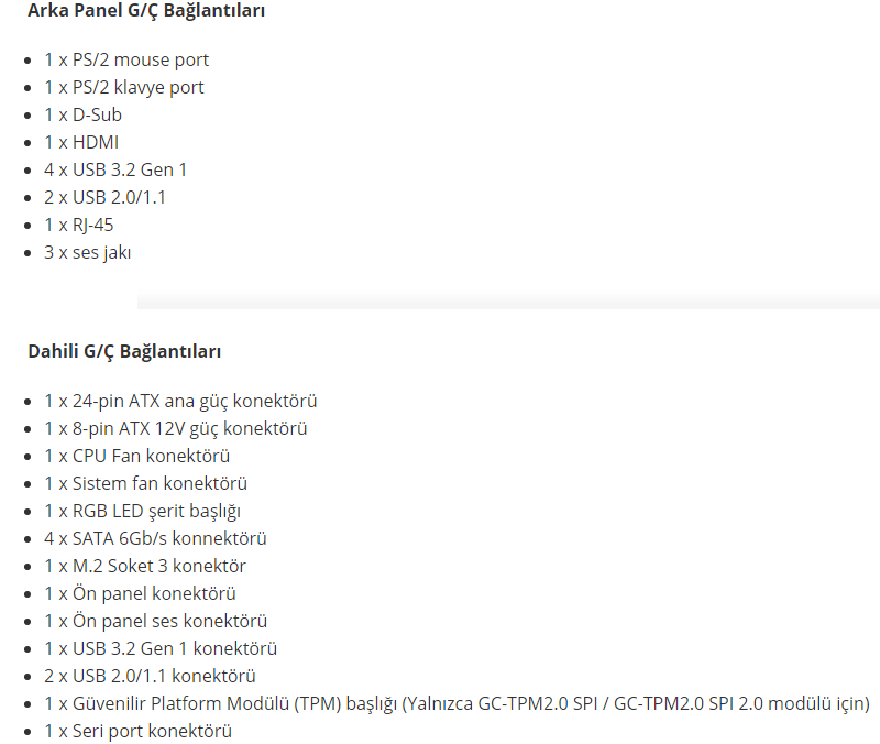 | Bellek (RAM) Frekansı | 2133 Mhz, 2933 MHz, 2666 MHz, 2400 MHz, 2800 MHz |