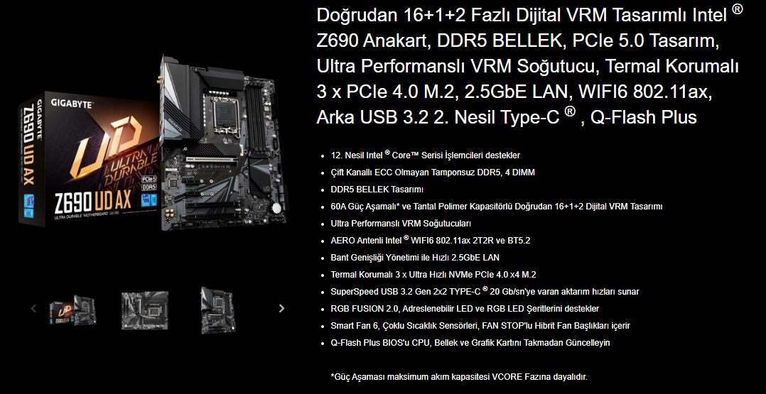 | İşlemci Chipset | Intel Z690 |