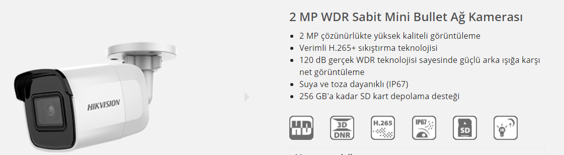 Haikon HIKVISION 2MP Mini IR IP Bullet Kamera (H.265+) DS-2CD2021G1-I