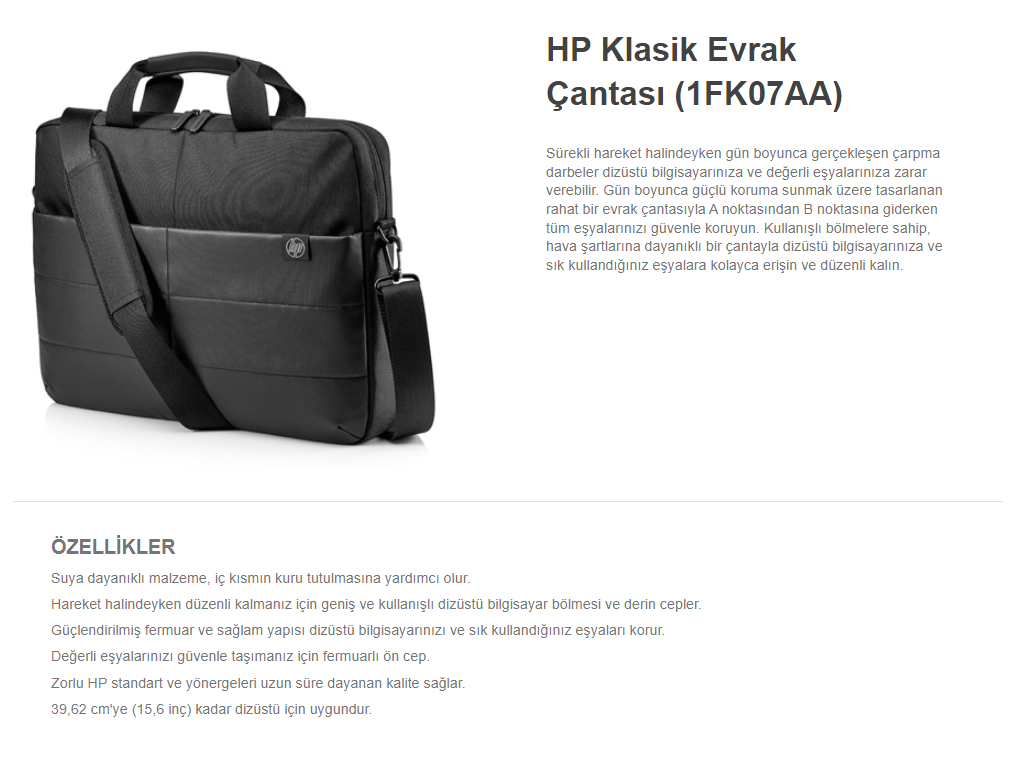 HP Classic Briefcase Notebook Çantası 15.6'' 1FK07AA