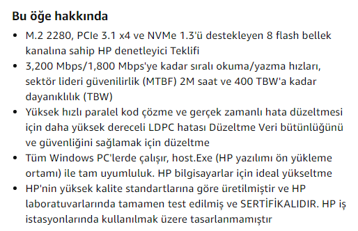 HP EX920 M.2 512 GB Dahili Katı Hal Sürücüsü SSD 2YY46AA