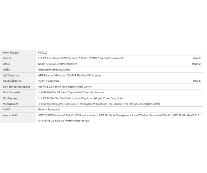 İşlemci: Intel® Xeon® Gold 5218 processor 2.30 GHz (22M Cache, up to 3.90 GHz 16 Çekirdekli)