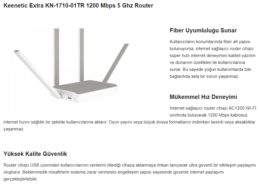 Keenetic Extra AC1200 5Port USB2 Mesh Router AP KN-1710-01TR