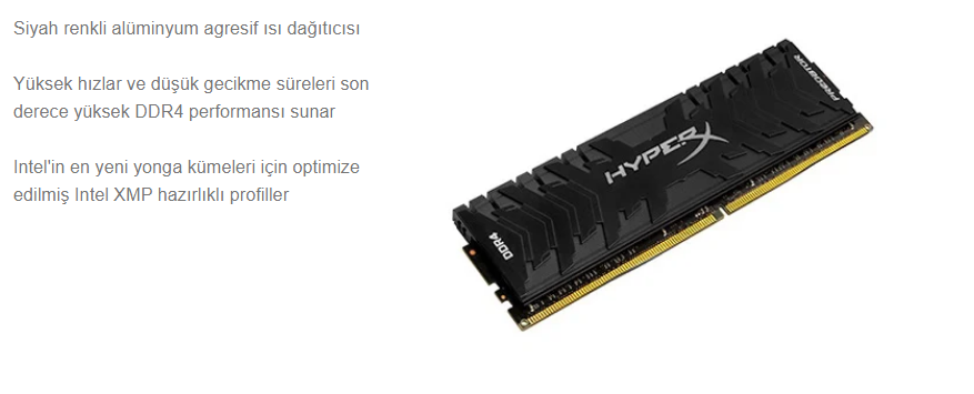 Kingston 8GB Beast Black 3200mhz CL16 DDR4 Masaüstü Ram (Bellek) KF432C16BB/8TR