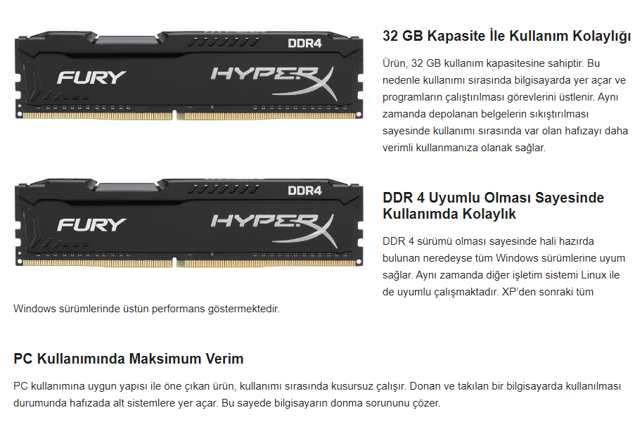 Kingston 32GB 2x16 HyperX DDR4 Masaüstü Bellek HX424C15FB3K2/32