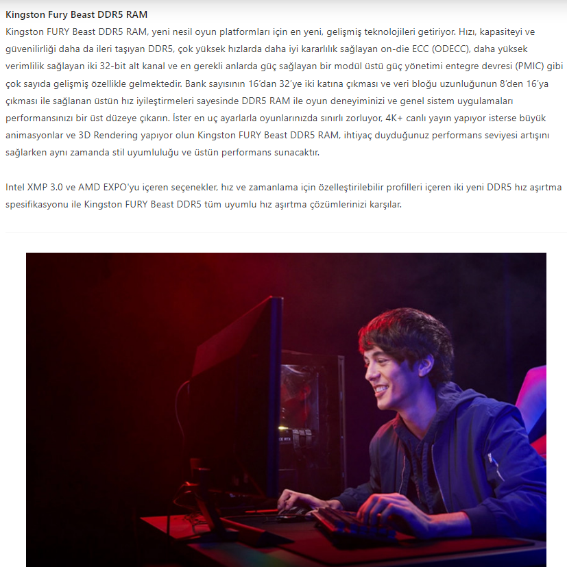 Kingston Beast Expo 32GB DDR5 6800MHz CL34 Masaüstü Performans Ram Kit (2x16GB) KF568C34BBEK2-32TR