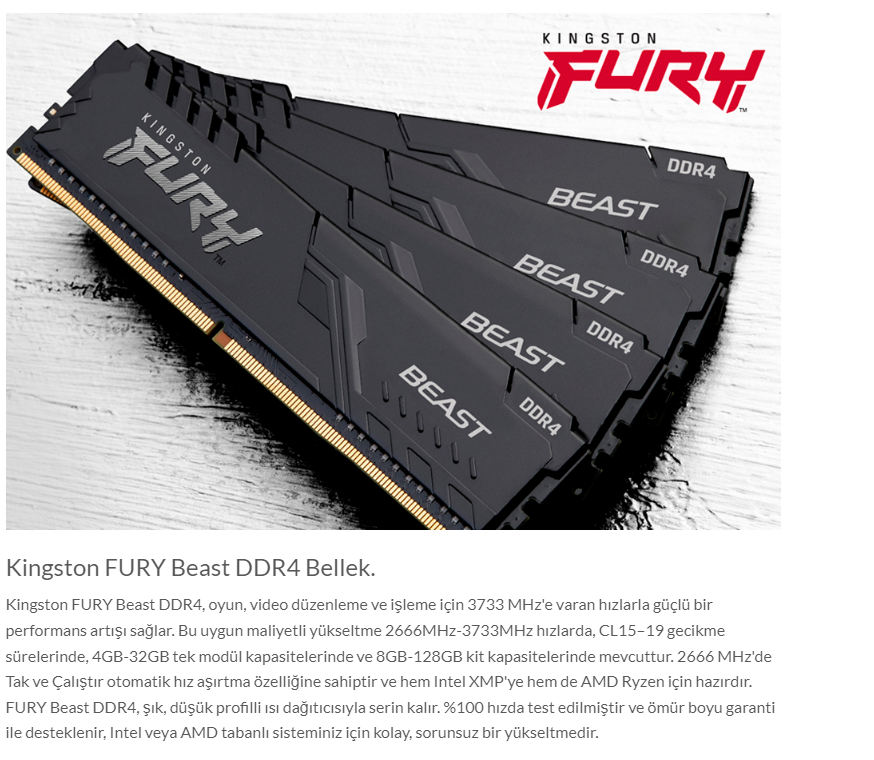 Kingston FURY Beast DIMM 32GB (2x16GB) DDR4 3200MHz CL16 Performans Ram (Bellek) KF432C16BB1K2/32