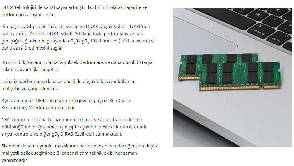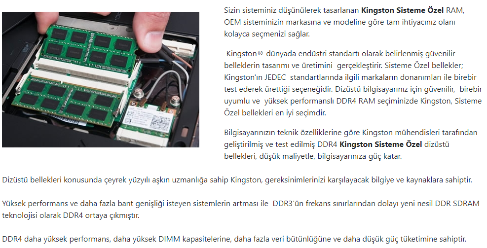 Kingston Sisteme Özel 4GB DDR4 2666MHz Notebook Ram KCP426SS6/4
