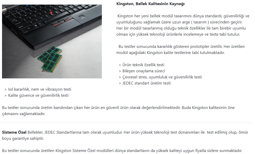Kingston Sisteme Özel 4GB DDR3 1333MHz Notebook Ram (Bellek) KCP313SS8/4