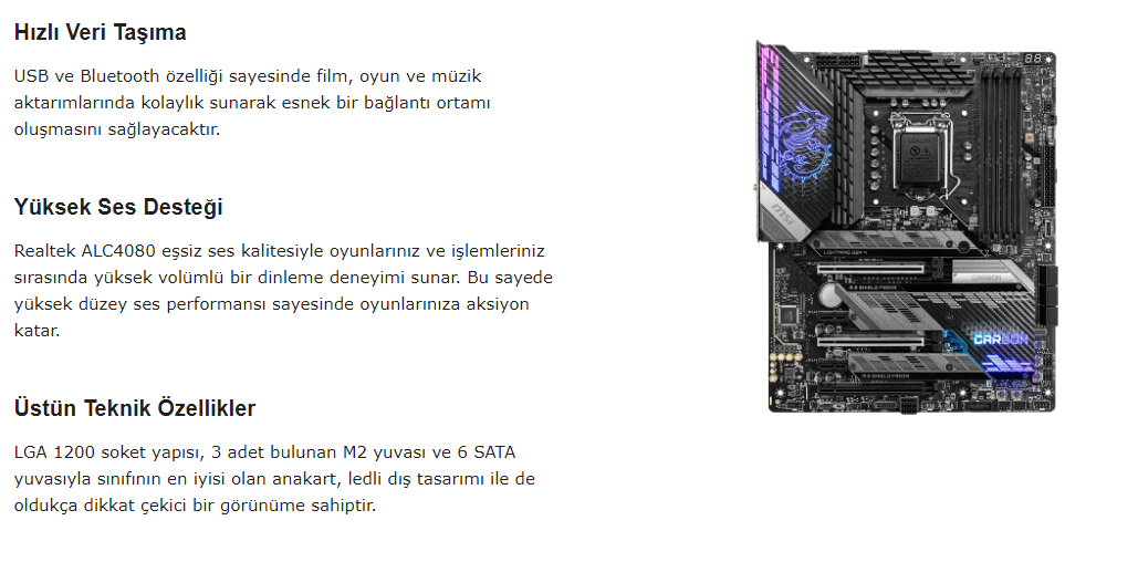 •6x SATA 6 Gb/sn bağlantı noktası (Z590 Chipset'ten)