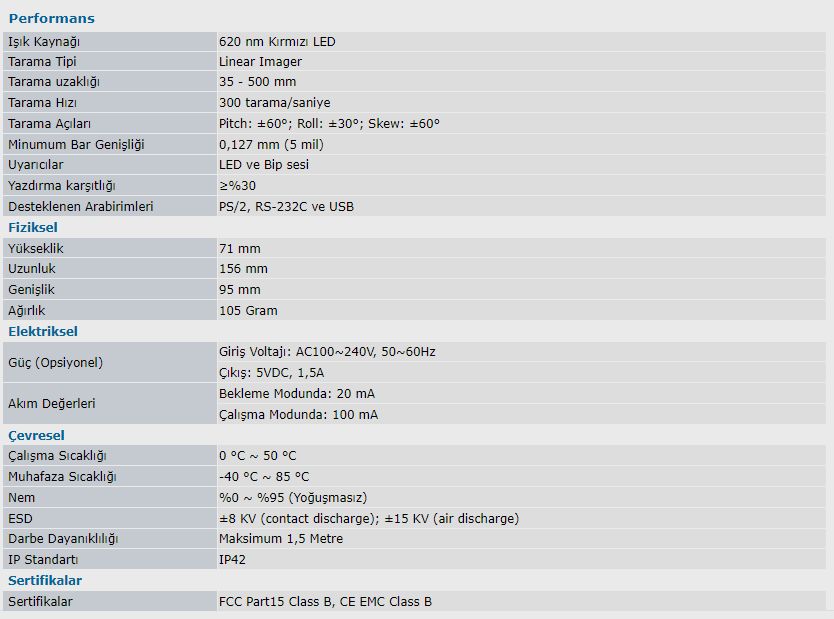 ● 1D CCD Barkod Okuyucu