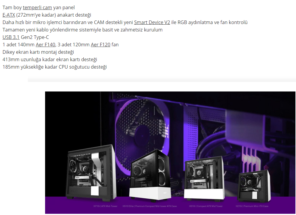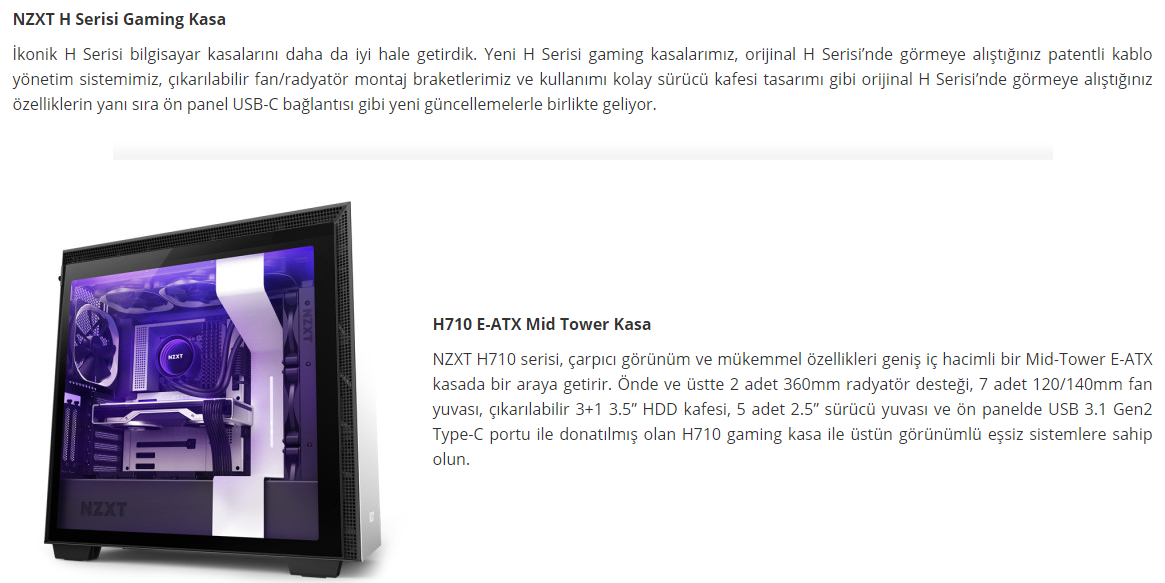 Nzxt H710i Temperli RGB Beyaz/Siyah Mid Tower Kasa