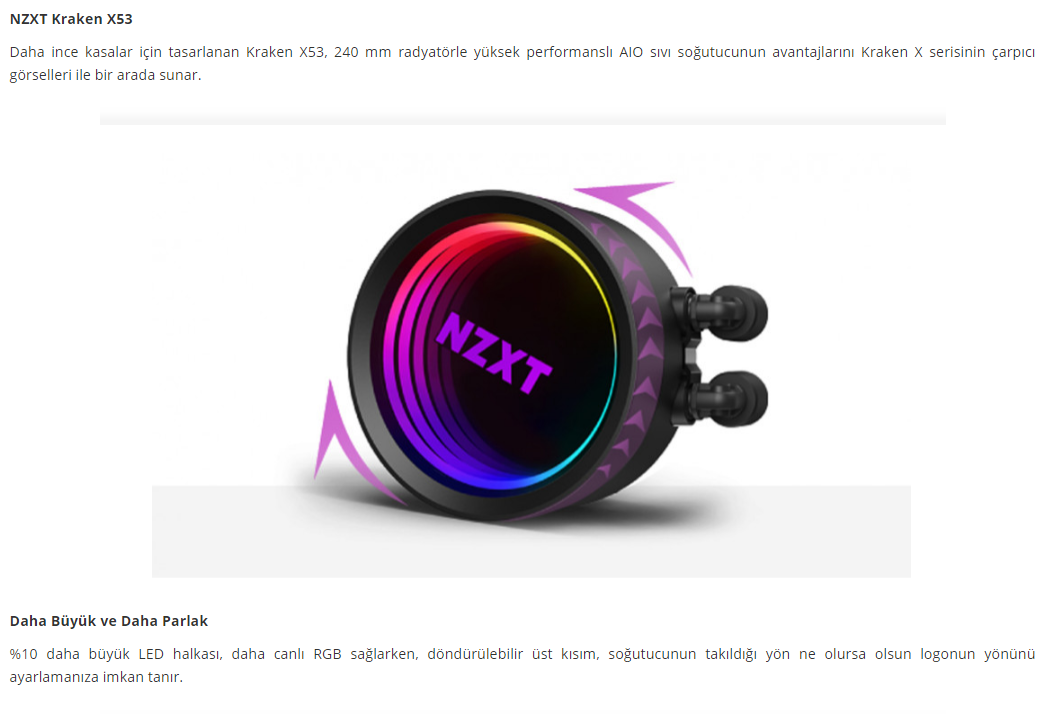 Nzxt Kraken X53 RL-KRX53-01 Sıvı Soğutucu