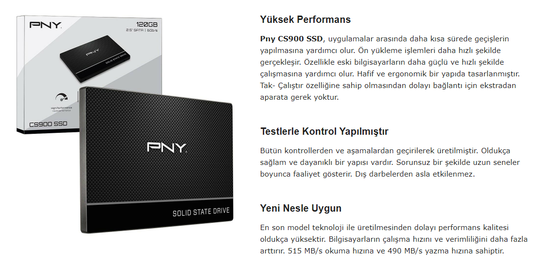 Pny CS900 120GB 515/490MB/s 2.5" SATA3 SSD Disk SSD7CS900-120-PB