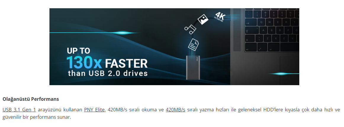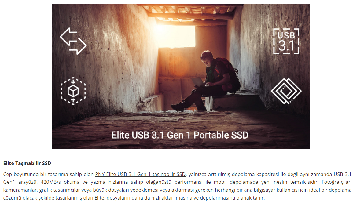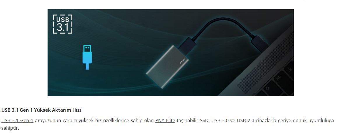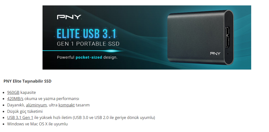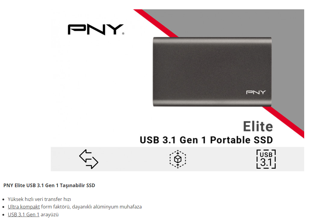 Pny Elite 960GB 420/420MB/s USB 3.1 Gen1 Taşınabilir SSD Disk PSD1CS1050-960-FFS