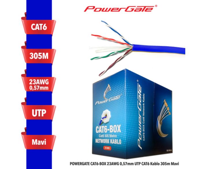 Powergate CAT6 305M 23AWG KABLO MAVİ CAT6-BOX-BL