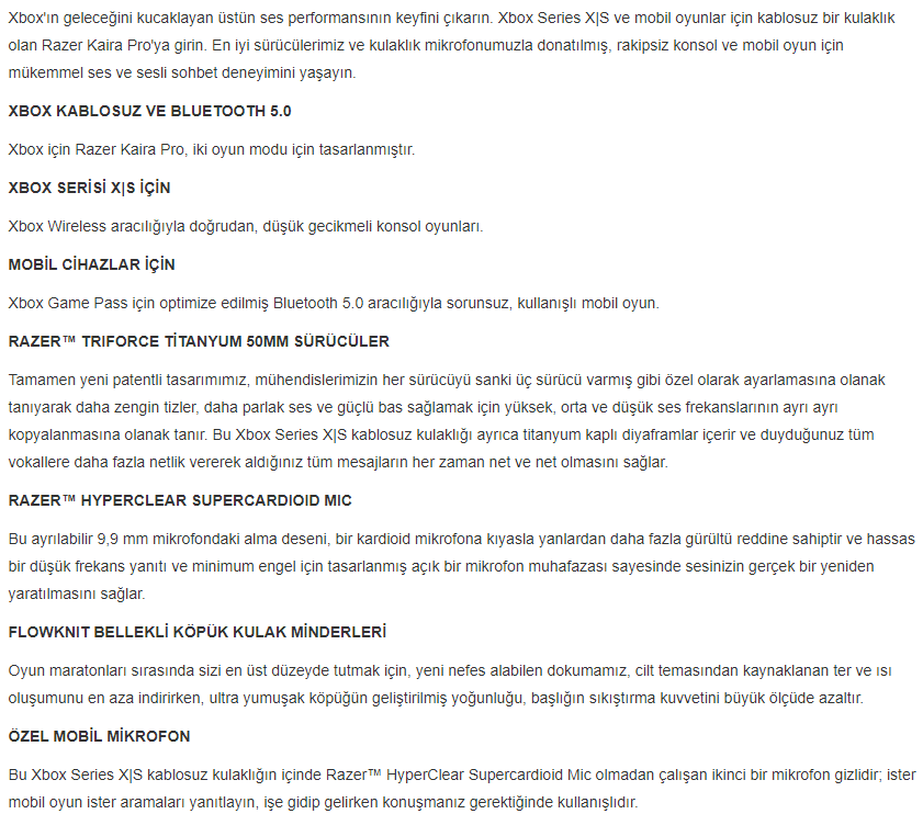 Razer Kaira Pro For Xbox Siyah Gaming Kulaklık
