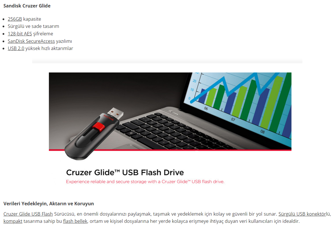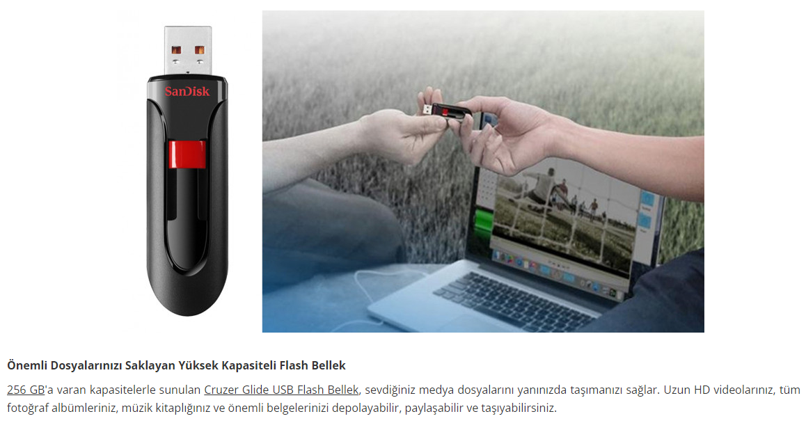 Sandisk 256GB Cruzer Glide USB 2.0 USB Flash Bellek SDCZ60-256G-B35