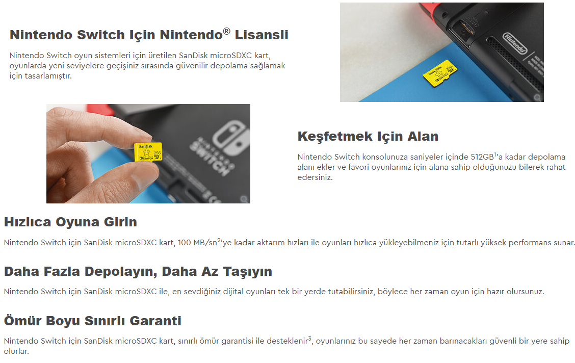 Sandisk 64GB Nintendo Switch microSDXC Hafıza Kartı