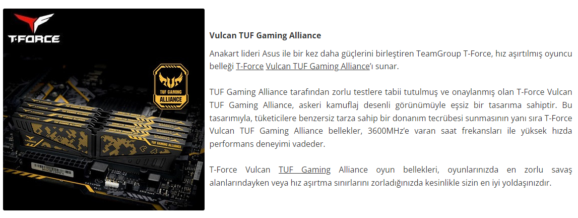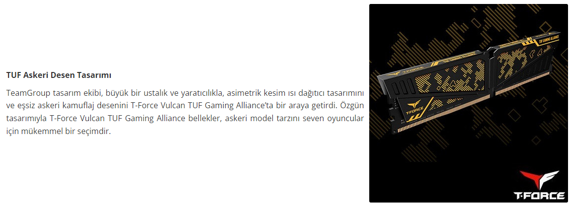 Team T-Force Vulcan TUF Gaming Alliance 16GB 3200MHz CL16 DDR4 Gaming Ram TLTYD416G3200HC16CDC01