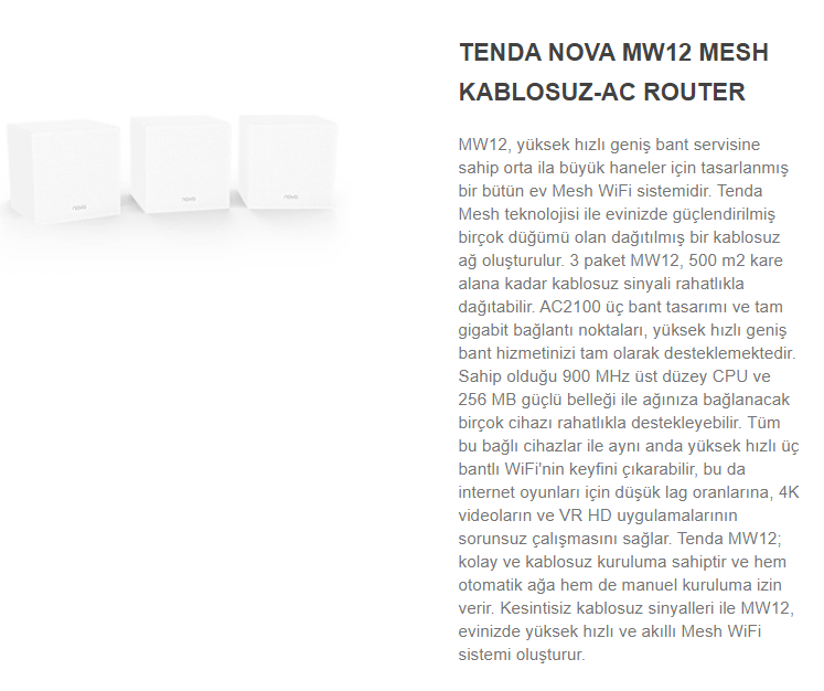 Tenda MW12-3-Pack Triband AC2100 Mesh Wifi System MW12-3-PACK