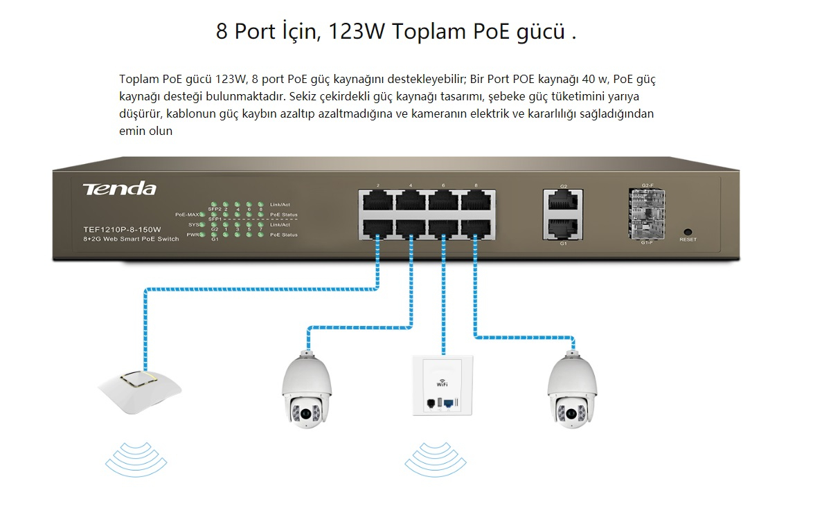 Tenda TEF1210P-8-150W 8 Port 10/100M + 2-Port Gigabit + 2 SFP Combo PoE Web TEF1210P